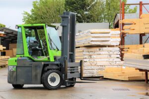 The multidirectional Combi-CB70E is a 7-tonne capacity electric counterbalance forklift, specifically designed for handling long and bulky loads in confined or challenging spaces. Equipped with Combilift’s patented Independent Traction Control System and large elastic rubber tyres, it provides all-terrain capability while maintaining zero-emission operation.